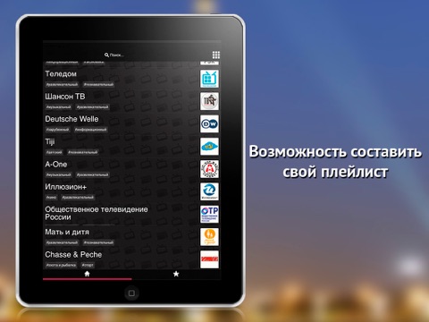 - возможность составить плейлист из любимых каналов