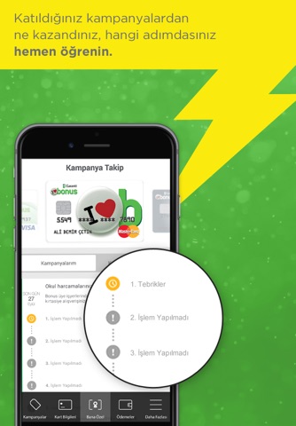 • Olumsuz sonuçlanan uygun kart başvurusu detaylarını Bonus Check-up’tan takip edebilir, iyileştirici aksiyon önerilerimizi görüntüleyebilirsiniz.