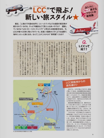 最近、巷で話題の格安航空会社(LCC)の活用法や、世界中の旅のプロフェッショナルである観光局イチオシの“今、行くべき旅先”を特集。巻末の「旅行情報を提供している観光局リスト」は、保存版です。