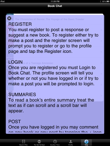 Have you ever read a great passage in a book and then craved to discuss it? Then this app is for you. BookChat™ makes it possible for you to hookup with other readers reading the same book as you. Open the app, register, then join in the chat.