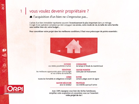 Le book commercial ORPI permet aux agents immobiliers de présenter les solutions immobilières ORPI de manière interactive et ludique aux prospects et clients.