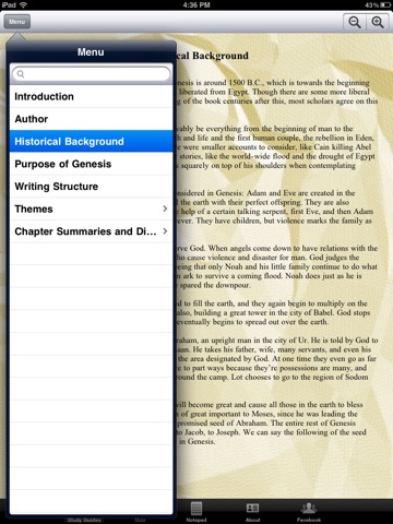 The app also features a quiz style game to test your Bible knowledge, and a notepad that lets you copy and paste text from the guide and email it to yourself.
