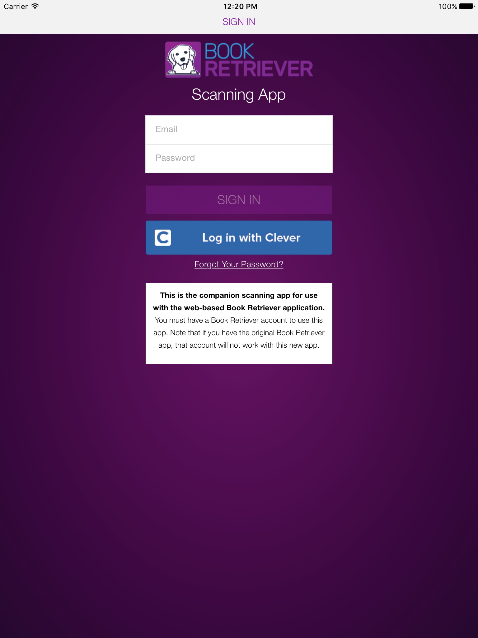The Book Retriever Scanning App is the companion app for use with the web-based Book Retriever application. You must have a Book Retriever account to use this app. Note that if you have the original Book Retriever app, that account will not work with this new app.