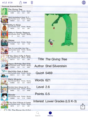 The "scan barcode" option is awesome. It doesnt catch every AR book but having to type in a title once in a while is much nicer than typing in every one! Also, I like that it keeps a history of the books youve scanned. I can easily see what AR books I have in my classroom library. It can even sort by level or by title which is great when trying to help kids look for books. Thanks so much for this!