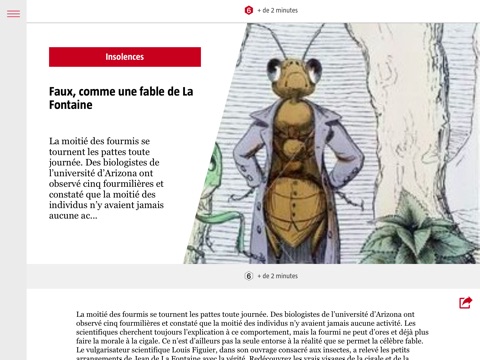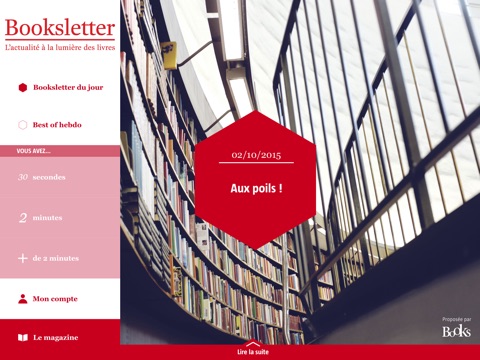 Elle présente deux brèves infos, une courte analyse, et une invitation à une lecture plus longue. Dans cette application, retrouvez l’édition du jour, son best of hebdomadaire, ses archives et un accès à tous les numéros du magazine Books