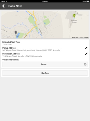 An app that allows users to book a taxi appointment with Narrabri Radio Cabs on the East Coast of Australia from their mobile device, specify a pickup location, a date, and time, and manage their bookings.