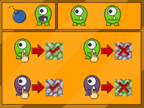 Drag the boom monsters to their base before they explode. Watch out! Do not mix them or they will kill them self!