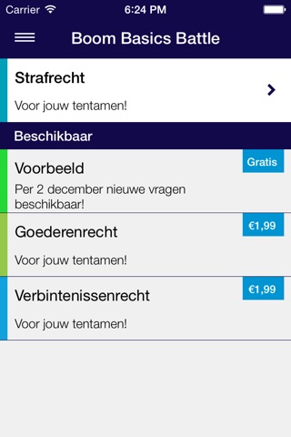 De Boom Basics, wie kent ze niet? Deze kleine boekjes van formaat hebben menigeen geholpen een tentamen te halen. Nu is er de Boom Basic Battle, een handige app waarmee je heel eenvoudig je tentamen op je telefoon of tablet voorbereidt. Zo kun je dus echt overal studeren.