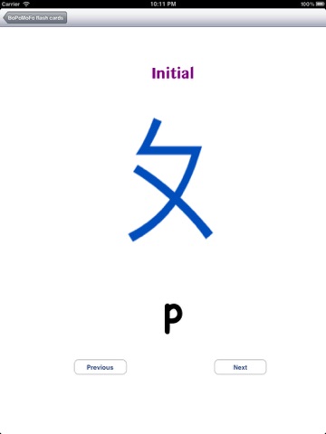 The Bopomofo flash cards will help you to memorize the system.