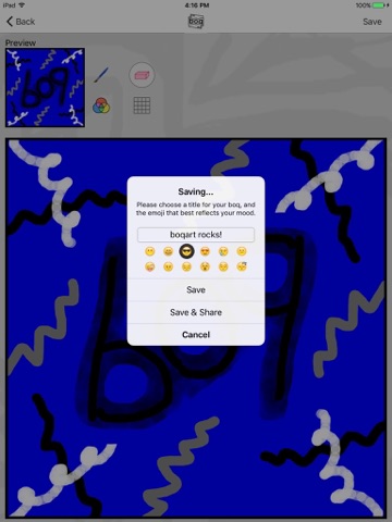 • Show off your boqart to friends by text, email, and social media!