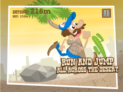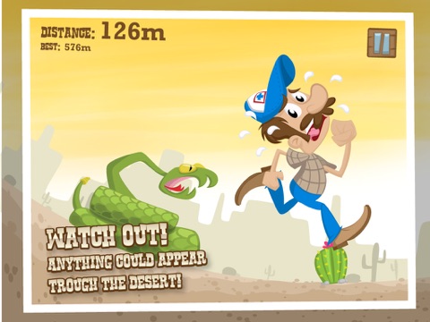 You are RUNNING in the dessert, be AWARE of the dessert obstacles like rocks, cactus, snakes and vultures, let´s see how far you can go ahead.