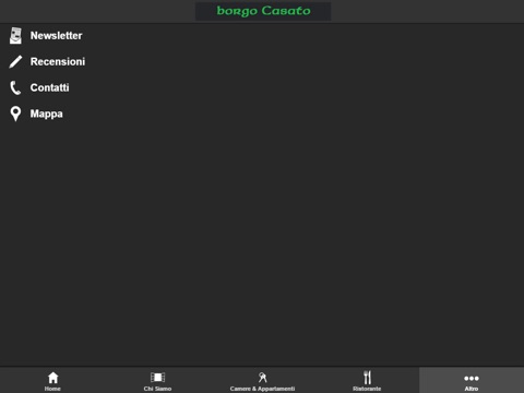 L’applicazione Borgo Casato contiene la descrizione della nostra attività e dei servizi, corredata dalle recensioni degli utenti e da una ricca galleria fotografica. Segui le news, approfitta dei coupon e prenota una stanza utilizzando il comodo sistema ‘Hotel’. In ogni momento, potrai contattarci con un clic.