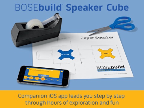 BOSEbuild Sound is the companion app to the BOSEbuild Speaker Cube. It includes experiments, fun activities, videos, animations, and more. It will also guide you with step-by-step, animated instructions as you assemble your speaker cube.