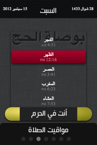 كما يمكن للبرنامج عبر استعمال نظام تحديد الموقع والأنظمة الجغرافية من تحديد فيما إذا كان موقعك الحالي ضمن حدود الحرم أو حدود عرفات أو مزدلفة أو مني بإظهار رسالة تخبرك آنك الآن داخل عرفات أو خارجه٬ وهل دخلت منى آم لا