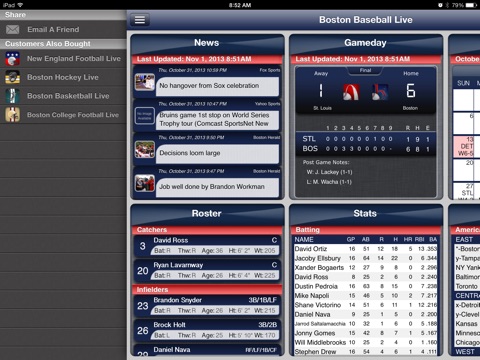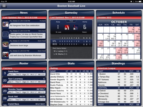App opens and then immediately closes for no reason. Game Day doesnt seem to be working. It hasnt updated since 2012 and its giving me a score from a Milwaukee game instead of Boston. Its a nice place to get quick stats for your team if they can fix the bugs