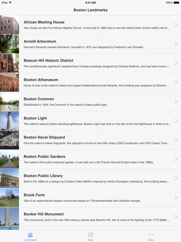 The Boston Landmarks app gives a user quick access to information and maps about Bostons 57 National Historic Landmarks including landmarks located on the Freedom Trail. Boston is rich in American history with the greatest amount of National Landmarks in one city. Many visitors every year head to Boston to discover the roots of America, and finding information about the National Landmarks is no longer a challenge with this app in the palm of their hand.