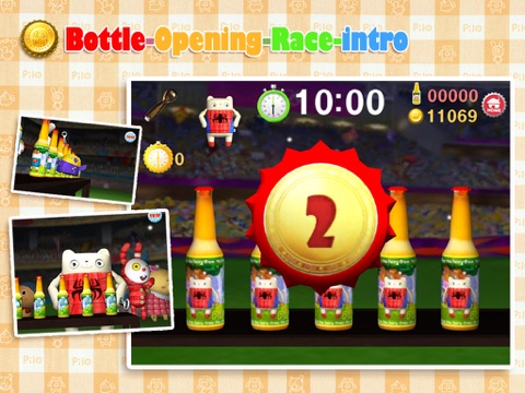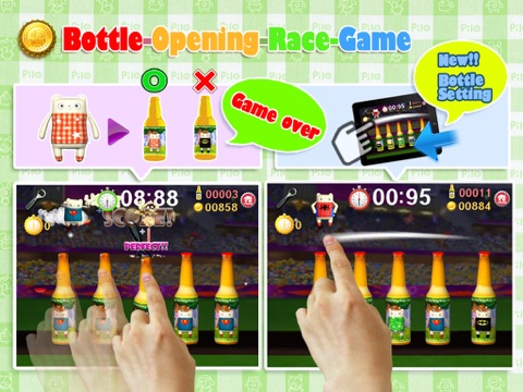 After the start signal, using your finger as opener, perform precise, quick touch and slide up to open as many bottles as possible within 10 seconds.