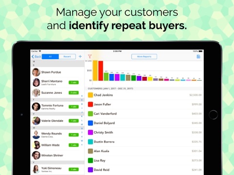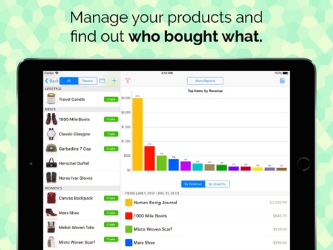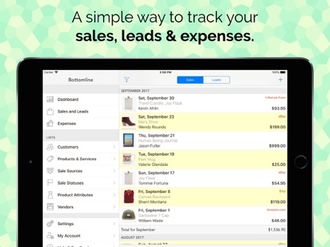 Bottomline helps you track all your sales, customers and products in one place, and ties them together so you can see who bought what. Bottomline also tracks your expenses so you can see how much youre spending on your business over time.