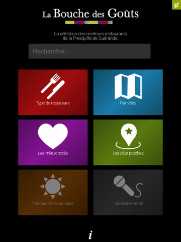 Application permettant de rechercher des restaurants, par types ou grâce à la géolocalisation, dans les environs de la presquîle de Guérande.