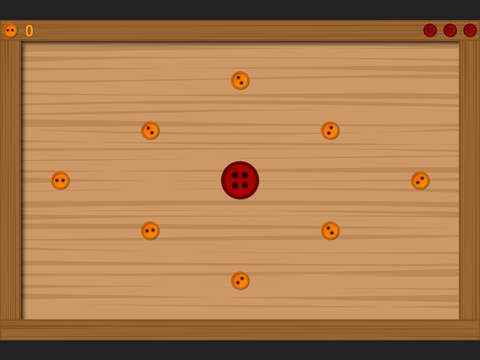 Shoot the red button 3 times, collect all golden buttons and avoid holes.