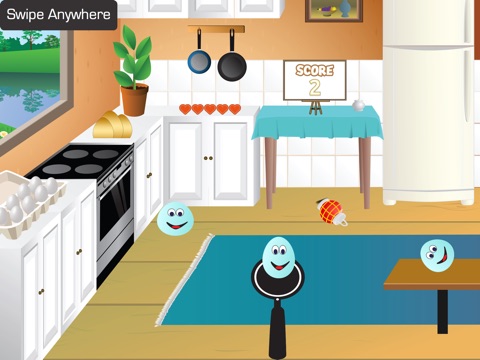 How many eggs can you move from one side to another? Swipe anywhere to move the pan & bounce the eggs. Beware of the grenades, a single hit will destroy the pan.