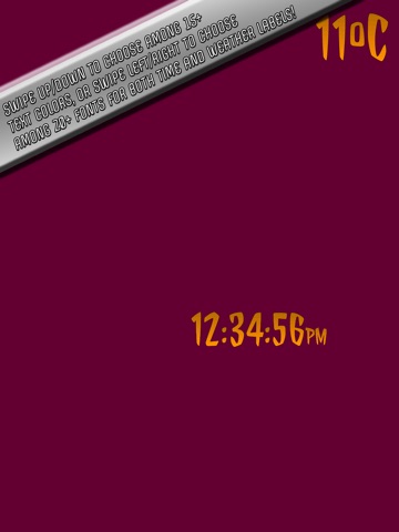 The application is completely customisable, meaning it lets you change both font and colour of the text, background colour, time mode and temperature mode - all with a single swipe or tap, depending on the desired action.