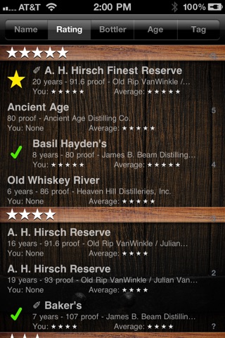 • Tag bottles (three tags to choose from, allowing you to track bourbons you want to taste, bourbons you liked, and bourbons you disliked)