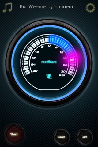 使い方は車に設置して(iPhoneはともかく道はなるべく水平)左下のスタートボタンを押すだけです。 後は角度を感知してアクセルオンオフでのブーストを表示します。 スタートを押すと角度の誤差を無くすので坂道が多かったりする時はその度にボタンを押せばOKです。 前荷重になった時にブローオフの音も設定できるし、メーターの種類も変更可能、音楽をかけながら使用できます。家にいる時は手を動かして「プシュープシュー」鳴らして遊んでるのもいいかも。