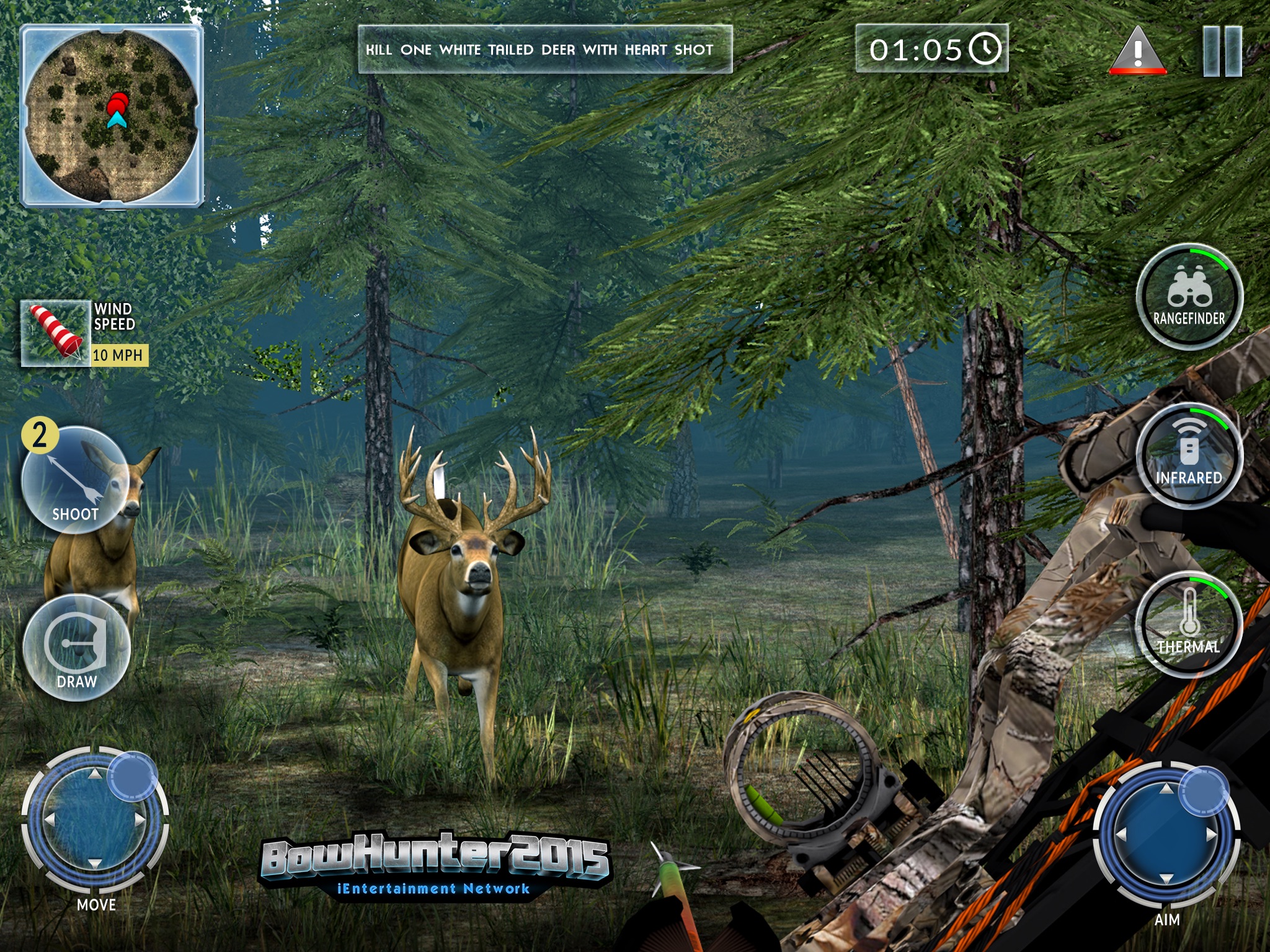 Bow Hunter 2015 is a realistic simulation of deer hunting with upright bows including detailed 3d terrains, stalking hunts, treestand hunts, and regular tournaments with real cash prizes for the winning bowmen.