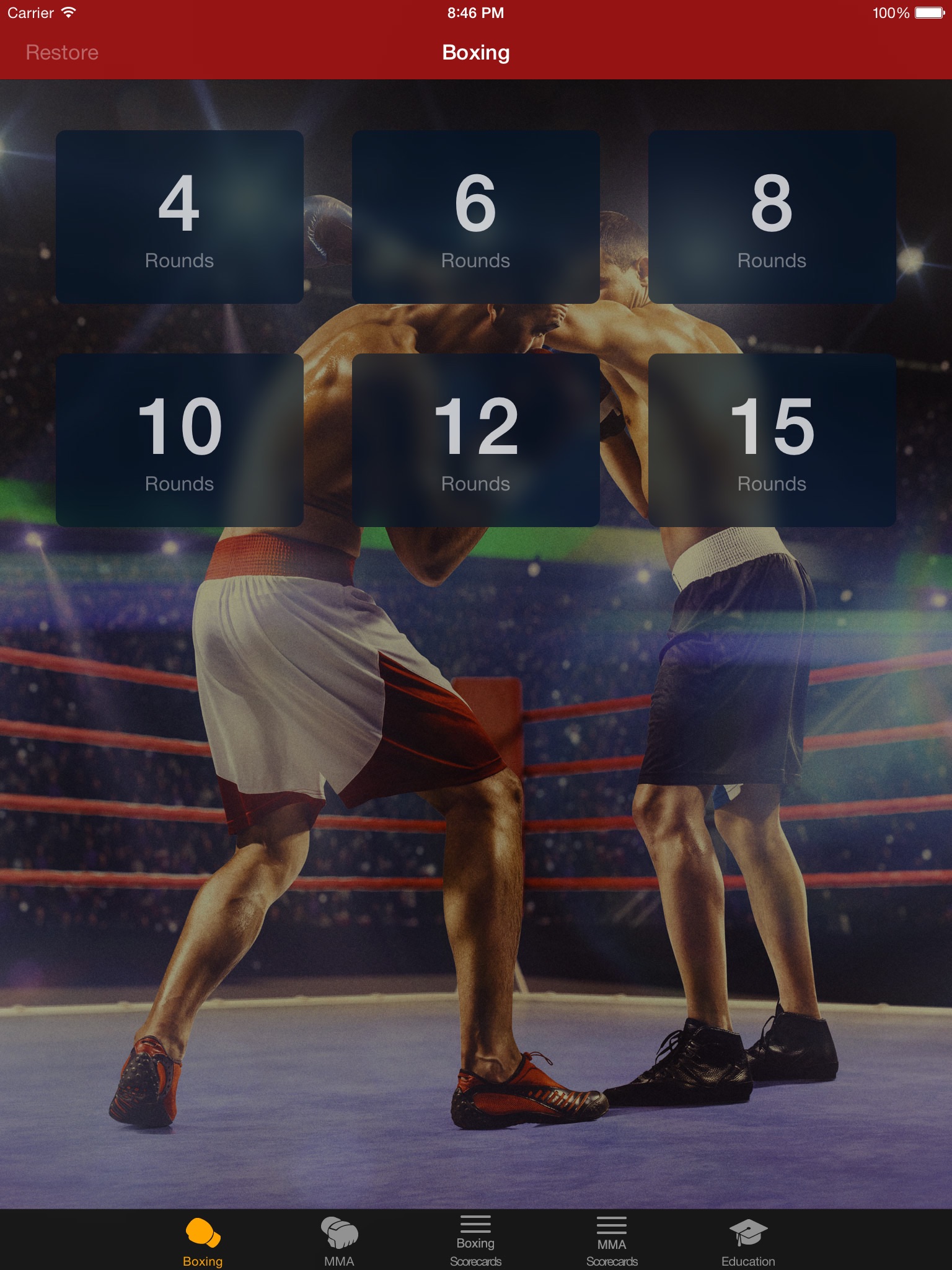 Turn your iPhone/iPad/iPod Touch into a scorecard. The Boxing & MMA Scorecard is designed by fight fans for fight fans. It has a beautiful, yet simple user interface that gives you the feeling of a big fight atmosphere. This full-featured app will make you feel like youre a professional ringside judge.