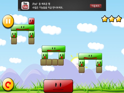 You get to clear a stage by stacking small red boxes on big red boxes. You can continue the game by touching the boxes to make them disappear.