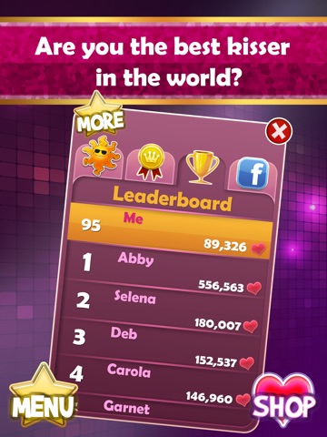 Play with friends on Facebook(optional) and see who the best kisser is!