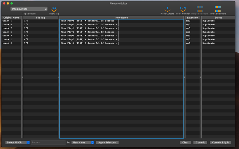Filename Editor solves the problem that batch-renaming utilities have: sometimes the batch processor relies on faulty or missing tag data, and there is no way of inspecting/correcting this data before committing the changes. Possibly losing valuable information in the process.