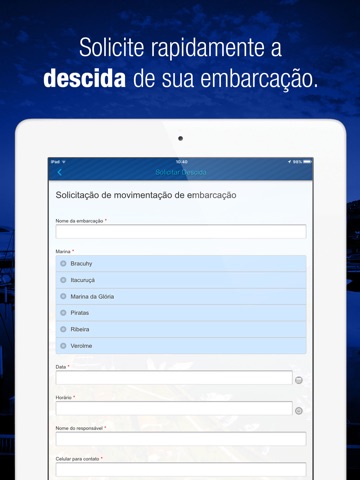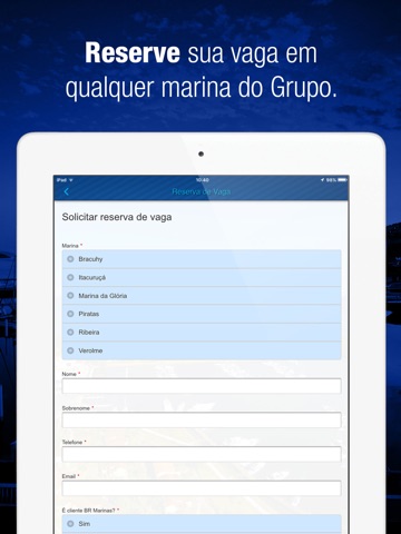 ● Enviar mensagens para a BR Marinas por formulário, foto ou mensagem de voz.