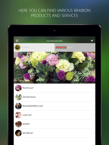 Brabion app gives you an opportunity to make online orders of large number of products and services: various flowers, plants and seedlings, original presents and sweets for almost all occasions, different gardening supplies and much more.