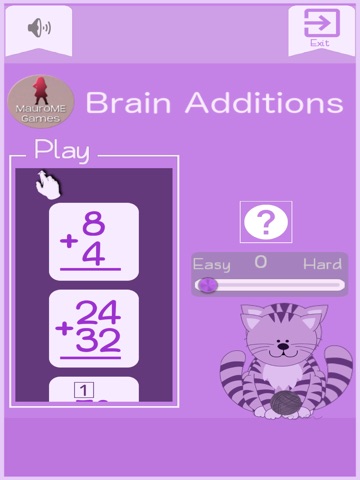Let your children play repeatedly, and youll see how they learn to do calculate additions very quickly and improve their mental calculation.This entry-level math game,similar to the Kumon method, will help improve their mental calculation with additions. Its also intended for adults who want to calculate faster.