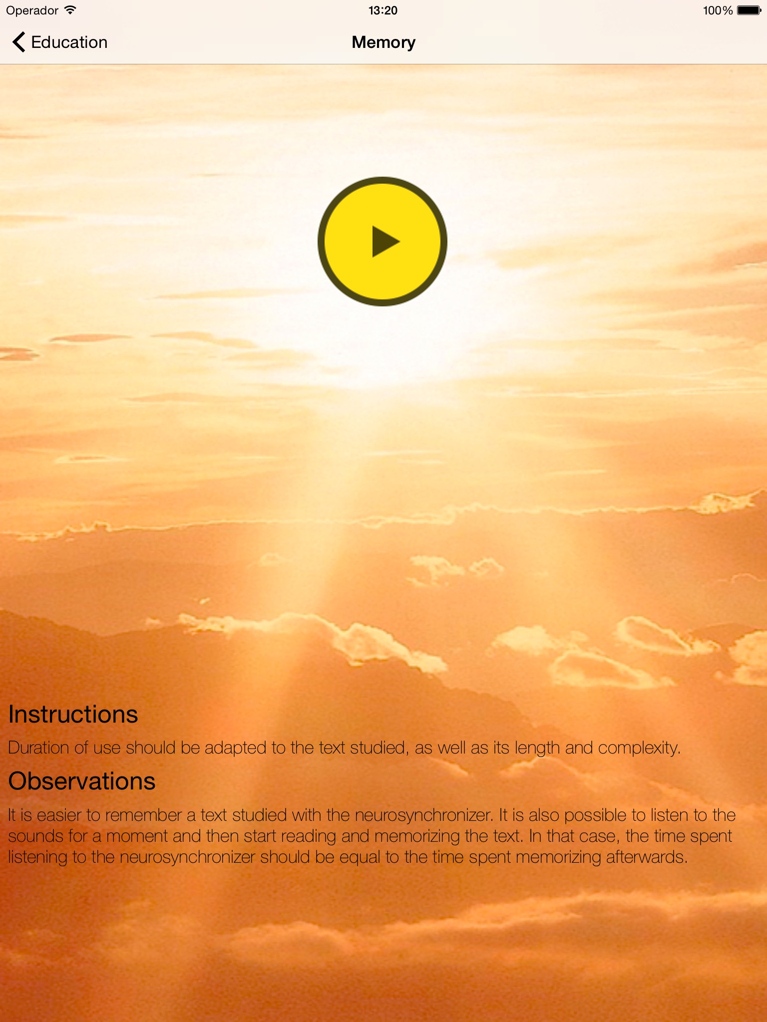 The rhythms of neurosychronization improve the synchronization of the cerebral hemispheres, and thus produce a feeling of relaxation, more optimism, an enrichment of thinking processes, an improvement of the personality, of creativity and the artistic sense, as well as a relief from certain disorders.