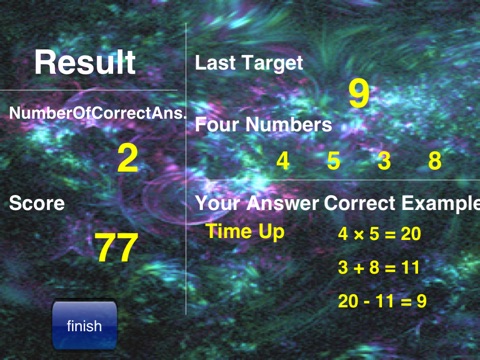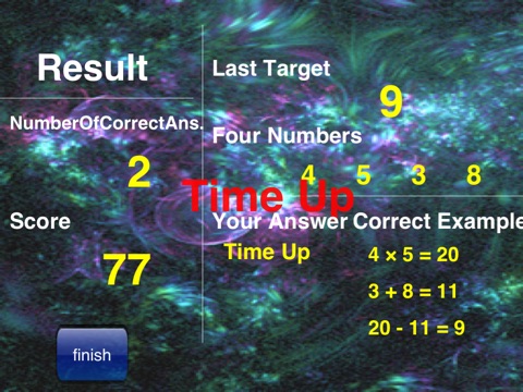 You must create the Target Number by arithmetic operations of four numbers within the time limit.