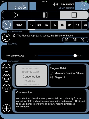 - Concentration: A powerful entrainment program designed to increase focus and concentration.