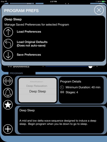 - Deep Relaxation: A sequence of entrainment programs that take the user to progressively more relaxed states of mind.