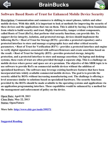 Sure, you can go to the SBIR government site and browse and search and eventually you might find what you’re looking for, but why bother? Now with BrainBucks you can target your search to your needs anytime, anywhere.