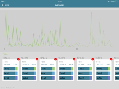 - Creation of your own trainings. Select up to three of the eight frequency bands to train up or down. Training management can be done by a therapist with password protected settings.