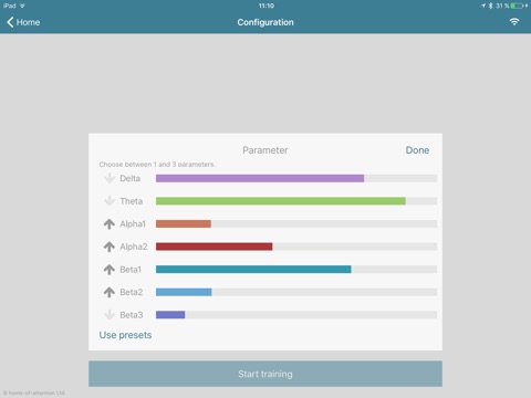 Psychologists and neurofeedback experts designed the app for mobile use as well as home training. Neurofeedback is used to measure EEG data of the brain and to use this data to influence your training.