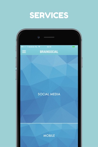 The BrainSocial app displays different aspects of our company like our services, work examples, contact information, but also easy access to our social media which will be an extra addition to your daily dose of inspiration, tips and tricks for your business.