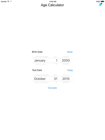 Brainy Skills Age Calculator is a simple tool to calculate time between two dates. The display quickly shows the answer in days, months, and years. Simply set the entry birth date and then set the test date and youre good to go!