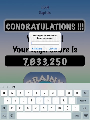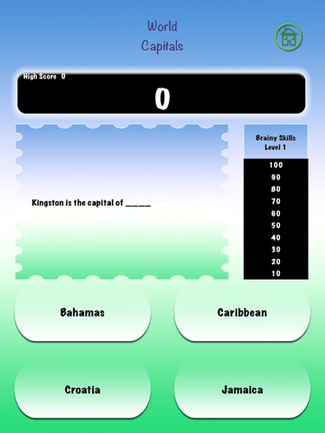 This app was created, developed and written by a former teacher with the assistance of a certified Speech Language Pathologist (SLP) with many years of hands on experience in a variety of settings from daycares, schools, and preschools with a large variety of both younger and older school age children, both typically developing and special needs children. After seeing the difficulties and struggles with answering a variety of questions, the great need for a unique, motivating, fun and exciting way to help improve these skills was obvious. There is a need to combine learning with fun in order to improve and increase motivation when grasping concepts such as basic geography, reasoning and matching skills. This app can also be used for practicing reading, memorization, and overall comprehension skills for middle and high school special needs students and those looking for remedial practice. Match the capitals and countries to various multiple choice options, while working your way up the scoreboard for points. It’s that easy! Motivate your child to beat their score each time they play and get to the highest score. There are also Brainy Bonuses that at times are tricky to teach and review the core material.