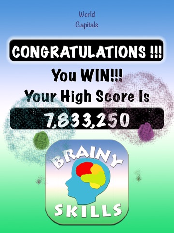 Brainy Skills World Capitals is a game designed to expand geography skills beyond the United States. It is presented in an exciting way to help students of all ages develop memorization skills, reading skills, and geography skills.