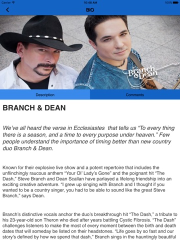 Get the latest in news concerts and tickets for Nashville number 1 music duo Branch and Dean. Branch and Dean have been creating country music together for many years. Steve Branch and Dean Scallan have parlayed a lifelong friendship into an exciting creative adventure
