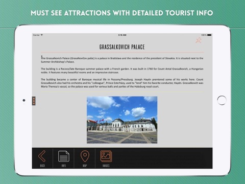 Tourist info for must see attractions such as Old Town, Grassalkovich Palace, Summer Archbishops Palace, Trinitarian Church of Bratislava, Hlavné námestie, Old Town Hall, Roland Fountain, Primates Square, Primates Palace, Bratislava Castle, among others.