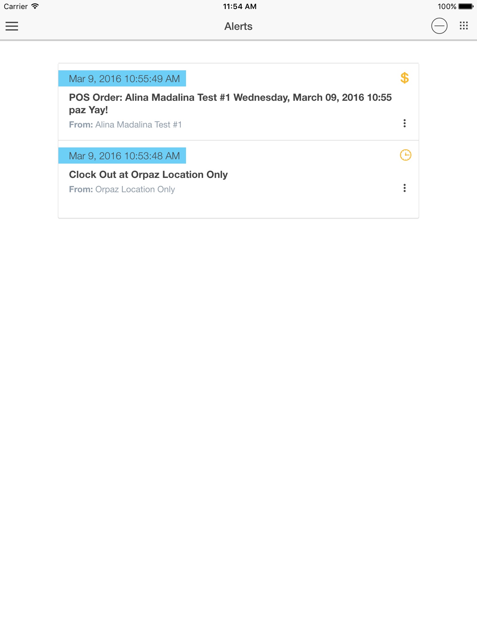 * Alerts and notifications for activities by employees, sales, clock-in and out, permission to adjust sales etc..